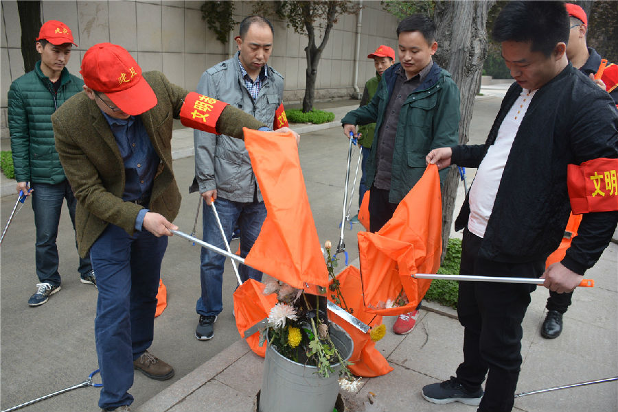 三、開展“倡議文明緬懷,減少廢棄污染”拾撿垃圾志愿服務(wù)活動。緬懷先烈活動結(jié)束后,市建投公司志愿者們在烈士陵園內(nèi)開展“倡議文明緬懷,減少廢棄污染”拾撿垃圾志愿服務(wù)活動。每位志愿者都手持垃圾鉗,認(rèn)真將散落在紀(jì)念碑前以及隱藏在雜草中的廢棄鮮花、飲料瓶、紙張等垃圾拾撿起來放入提前準(zhǔn)備好的垃圾袋中。活動持續(xù)一個小時,志愿者們在祭奠先烈的同時以自己的實(shí)際行動表達(dá)崇敬之情,并倡導(dǎo)以獻(xiàn)一束花、敬一杯酒、植一棵樹、清掃墓碑等方式寄托哀思,將祭拜逝者的傳統(tǒng)習(xí)俗以更加環(huán)保、健康、安全、文明的方式表達(dá),營造文明祭祀的良好氛圍。