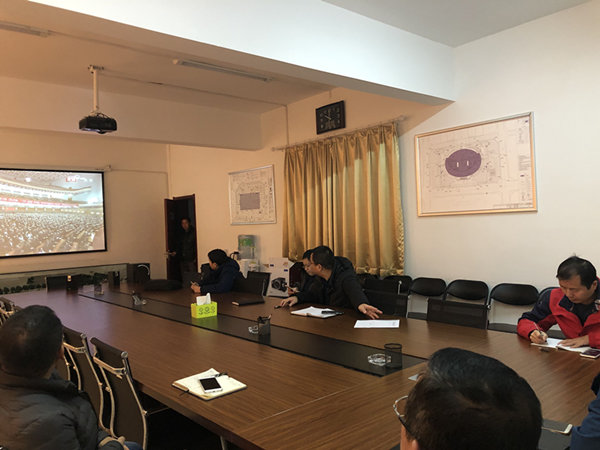 文博中心項目部:利用有限場地,通過直播平臺或手機端組織員工收看會議盛況。